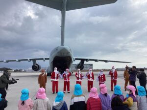 航空自衛隊美保基地が主催する『白兎・クリスマスドロップ2025』に年長・年中児が参加しました。
